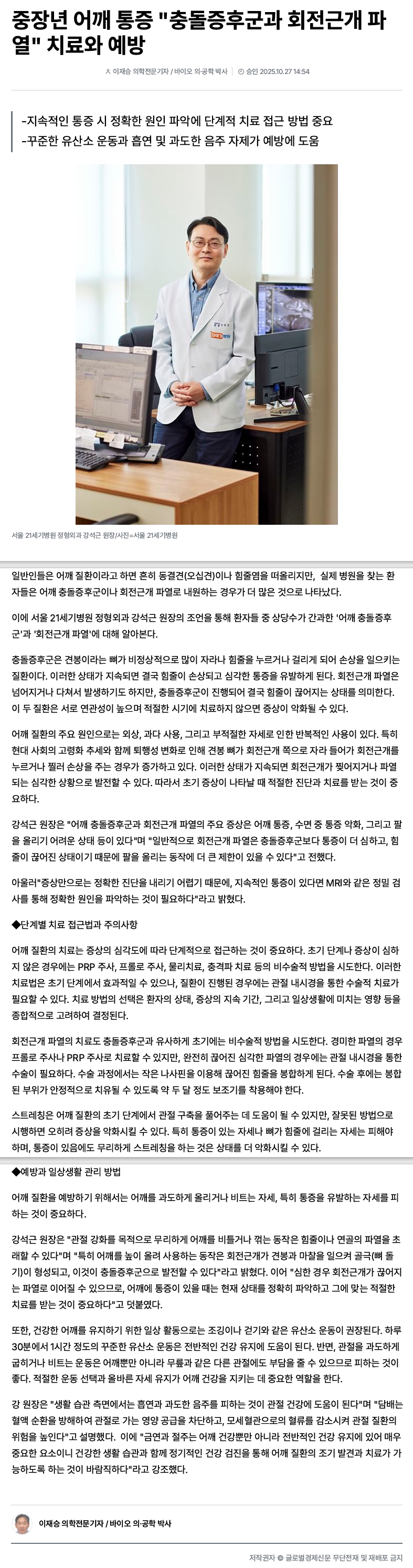 [±Û·Î¹ú°æÁ¦½Å¹®]Á¤Çü¿Ü°ú °¼®±Ù ¿øÀå´Ô - ÁßÀå³â ¾î±ú ÅëÁõ "Ãæµ¹ÁõÈıº°ú ȸÀü±Ù°³ ÆÄ¿" Ä¡·á¿Í ¿¹¹æ