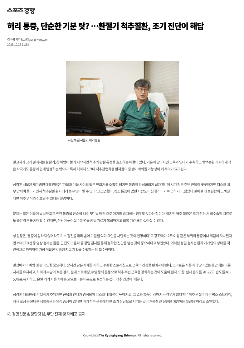 [½ºÆ÷Ã÷°æÇâ]½Å°æ¿Ü°ú ¼º°æÈÆ ´ëÇ¥¿øÀå - Ç㸮 ÅëÁõ, ´Ü¼øÇÑ ±âºÐ Å¿? ¡¦È¯Àý±â ôÃßÁúȯ, Á¶±â Áø´ÜÀÌ ÇØ´ä