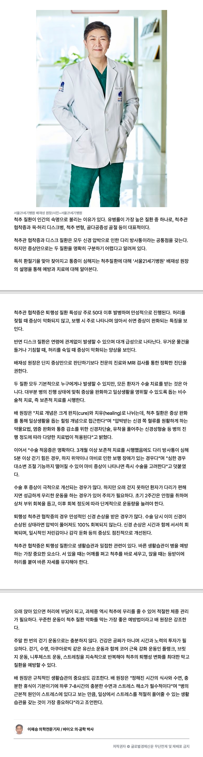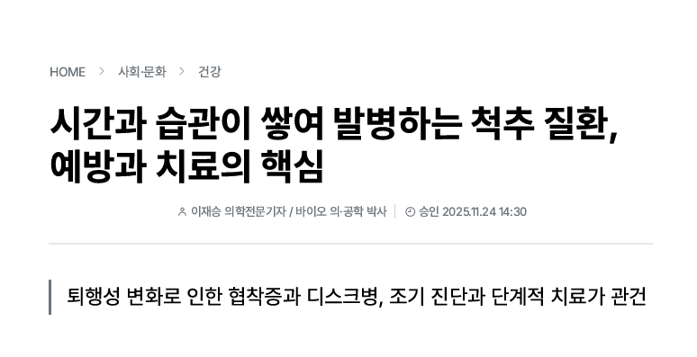 [±Û·Î¹ú°æÁ¦½Å¹®]½Å°æ¿Ü°ú ¹èÀ缺 ¿øÀå´Ô - ½Ã°£°ú ½À°üÀÌ ½×¿© ¹ßº´Çϴ ôÃß Áúȯ, ¿¹¹æ°ú Ä¡·áÀÇ ÇÙ½É
