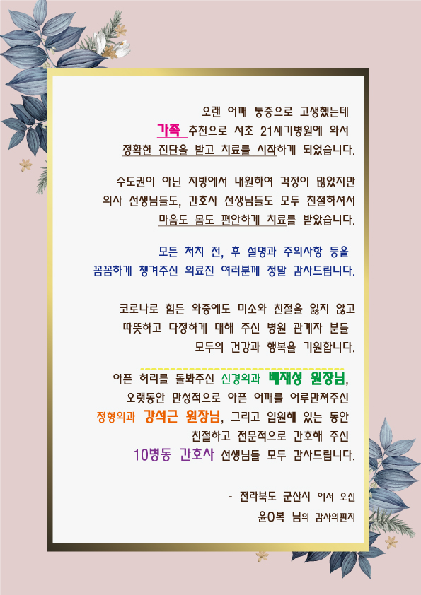 ÀüOO´Ô, Á¤OO´ÔÀÇ °¨»çÀÇÆíÁö(2021³â ..