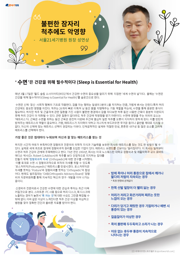 [¼¼°è ÀϺ¸] "ºñÁî¾Ø ½ºÆ÷Ã÷¿ùµå" ½Å°æ¿Ü°ú ¼º¿¬»ó ¿øÀå´Ô - ºÒÆíÇÑ ÀáÀÚ¸® ôÃß¿¡µµ ¾Ç¿µÇâ