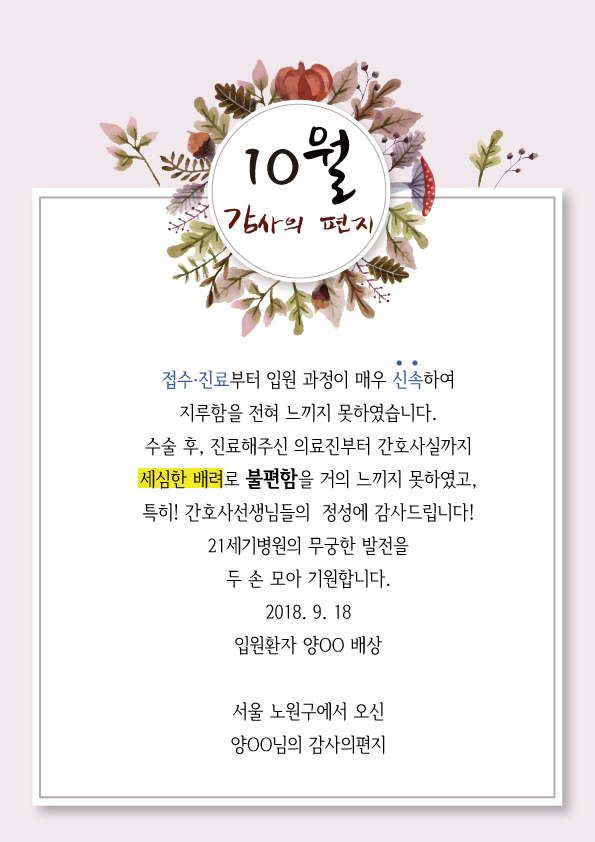 ±èOO´ÔÀÇ °¨»çÀÇÆíÁö(2018³â 11¿ù)