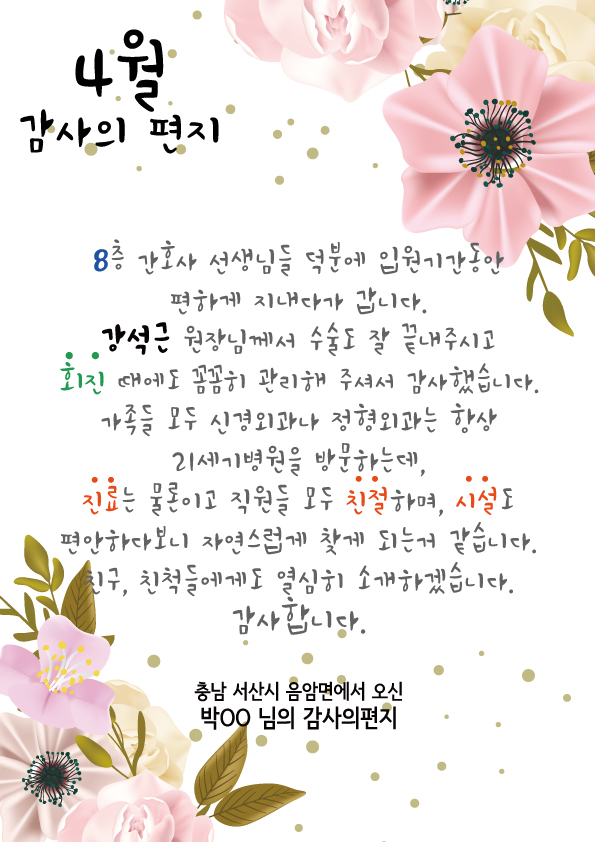 ¼ÕOO´Ô, ±èOO´ÔÀÇ °¨»çÀÇÆíÁö(2019³â 5¿ù)